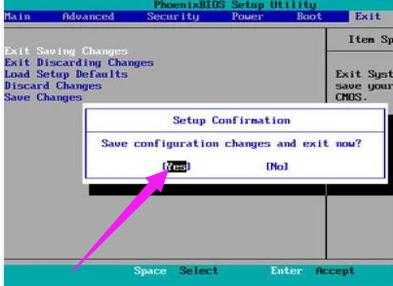 在exit中的exit saving changes 设置为yes,此时就成功设置为U盘启动了。