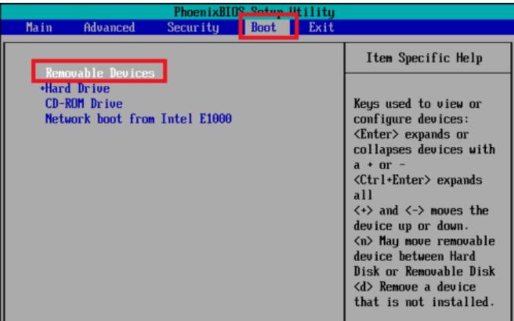 1,U盘插到要安装Linux的电脑上后,启动电脑,在启动时,一直按F2键,就能进入到主板的BIOS控制界面,按左右键移动到boot选项。然后按上下键到removeable device选项,再按+号移动它的位置在最上方。因为我这台电脑比较老,所以U盘只能显示为removeable device,对于一些比较新的主板,可以直接显示出U盘的名称。那就把这个名称移动到最上方即可。然后按F10保存设置,按回车确认,系统开始重启。