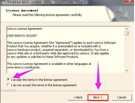 请查看协议,并选择是否接受,然后点击:Next。