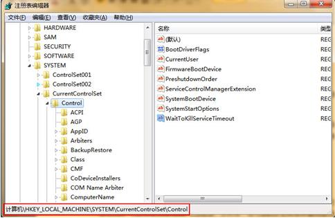 进入“注册表编辑器”页面后,按序打开以下文件夹打开“HKEY_LOCAL_MACHINE-SYSTEM-CurrentControlSet-Control”