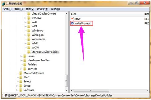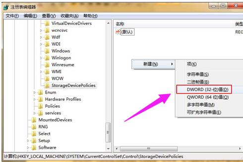 选中“torageDevicePolicies项,在右边新建的“Dword值”将其命名为“WriteProtect”。