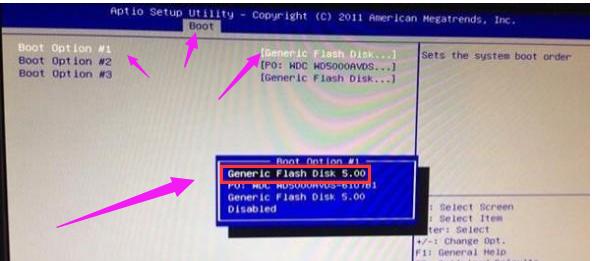 弹出一个选择的小窗口,里面不管有多少选择,选择u盘项(一般显示为Generic Flash Disk 5.00)。