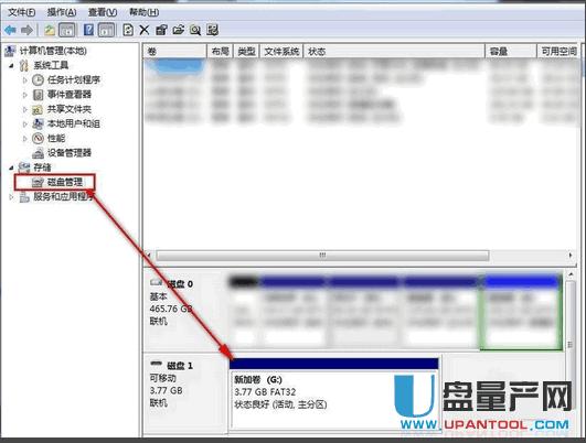 找到存储下的“磁盘管理”,右侧就能看到我们的内存卡盘符了。 右击它,选择“格式化”。
