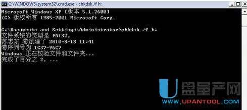 假设内存卡的盘符为h盘,则在命令提示符窗口输入chkdsk /f h:后回车: