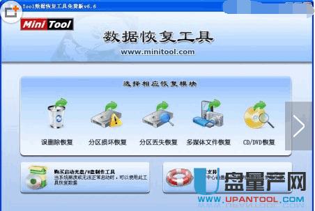 网上搜索并下载MiniTool数据恢复工具,安装到电脑中,完成这个操作以后,运行该软件