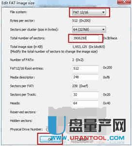 接着在打开的“edit fat image size”窗口中,选择“file system”为“fat12/16”,将“total number of sectors”(扇区总数)设置为特定大小,小编的tf卡为2g,故应该设置为“2000000000/512=3906250”。然后点击“ok”按 钮将其保存到与下载解压目录相同的位置。