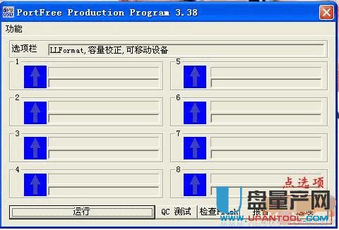 网上搜索下载并安装 PortFree Production Program 软件,然后将损坏的内存卡插入读卡器插入电脑,打开软件进入主界面,点“选项”
