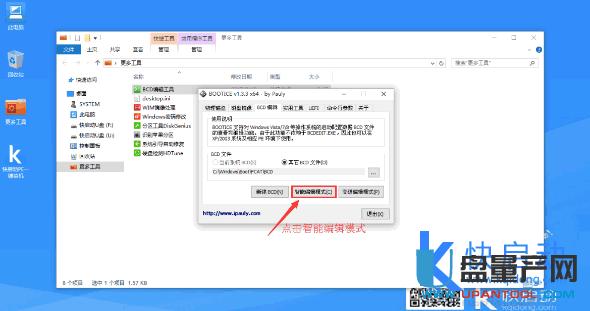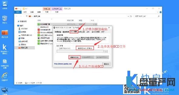 2、进入winPE系统后,双击桌面上的“更多工具” 文件夹,在文件夹中找到并双击“BCD编辑工具”图标,打开bootice工具,如图所示: