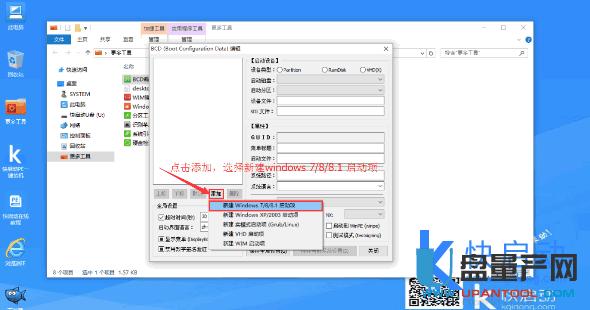 11、接下来,我们按照上面的方法再次添加win10的BCD信息,点击“添加”,选择“windows 7/8/8.1 启动项”。