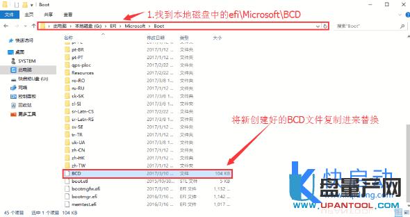 14、创建好BCD文件后,我们只需在快启动PE下将这个BCD替换到相应的目录下就可以完成引导修复了。所以此处BCD替换文件的目录为 ESP/EFI这个fat分区:efi\Microsoft\BCD。但由于UEFI BIOS引导windows系统时,是通过一个FAT格式分区下的bootmgfw.efi文件来导入BCD文件,ESP和EFI分区一般都是隐藏的 FAT分区,所以需要将ESP分区分配盘符。
