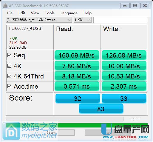 以折扣刚做好的NS1081主控的U盘为例,双贴THGBMFT0C8LBCAG,总容量256G。