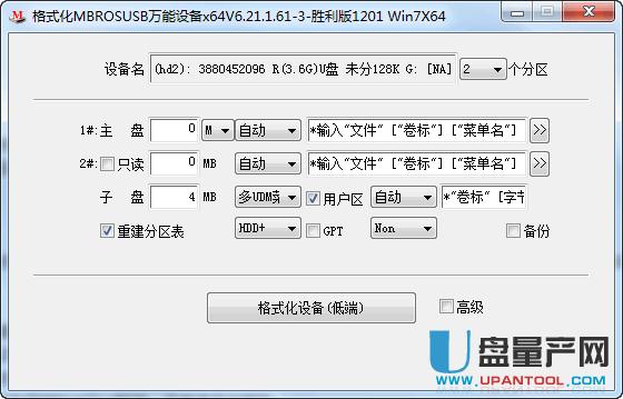 插上优盘,打开MBROSTool,确认磁盘处显示的是自己的优盘,点击 常用-格式化,如果弹出未分配空间不足的提示,直接关闭它。