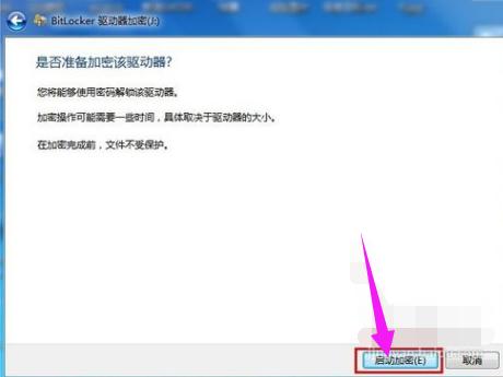 最后来到“是否准备加密该驱动器”,单击“启动加密”按钮,加密时间取决于驱动器的大小