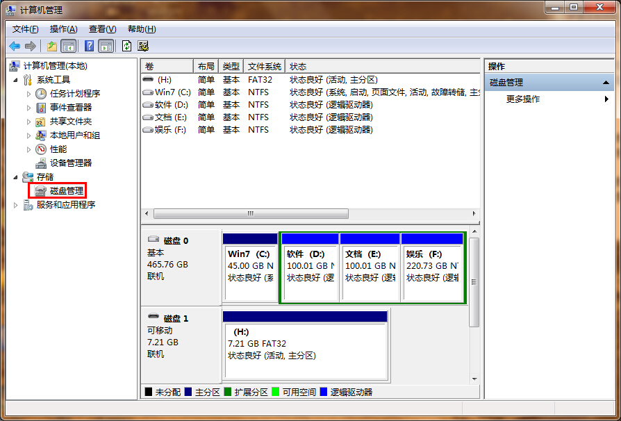 2、当点击“管理”后即可进入到“计算机管理”窗口,我们在打开的窗口中点击“磁盘管理”将其展开;如下图所示: