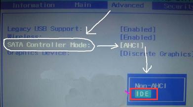 选中SATA那个选项,按回车后出来两个选项,选中AHCI 那个选项,将他切换为IDE就可以了。
