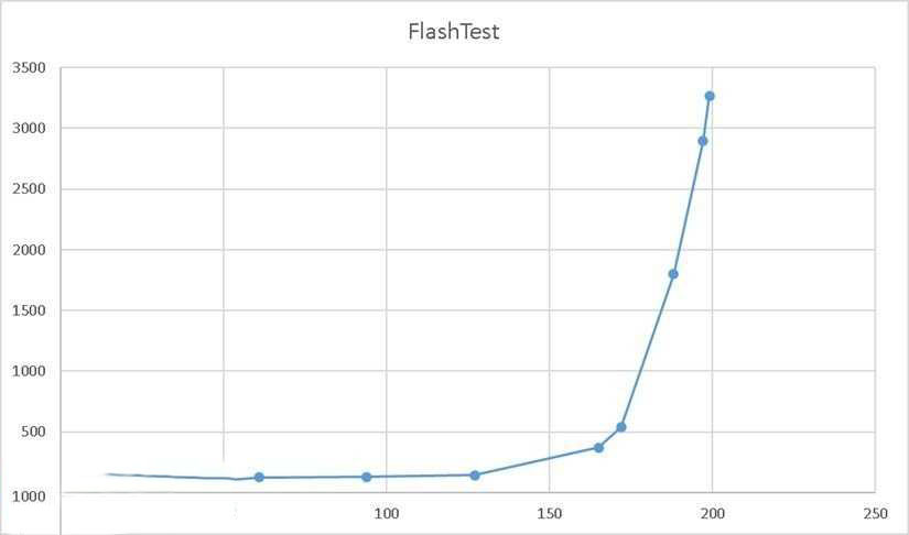历经一周多日日夜夜的连续测试,数据如下,其中,纵轴代表逻辑存储错误个数,横轴代表写入次数。