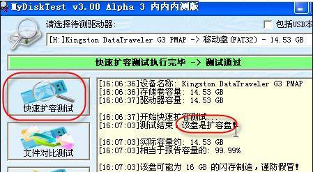 3、点击右侧的“快速扩容测试”,等几分钟后就会得到测试结果。很难过,我这个盘是扩容盘。