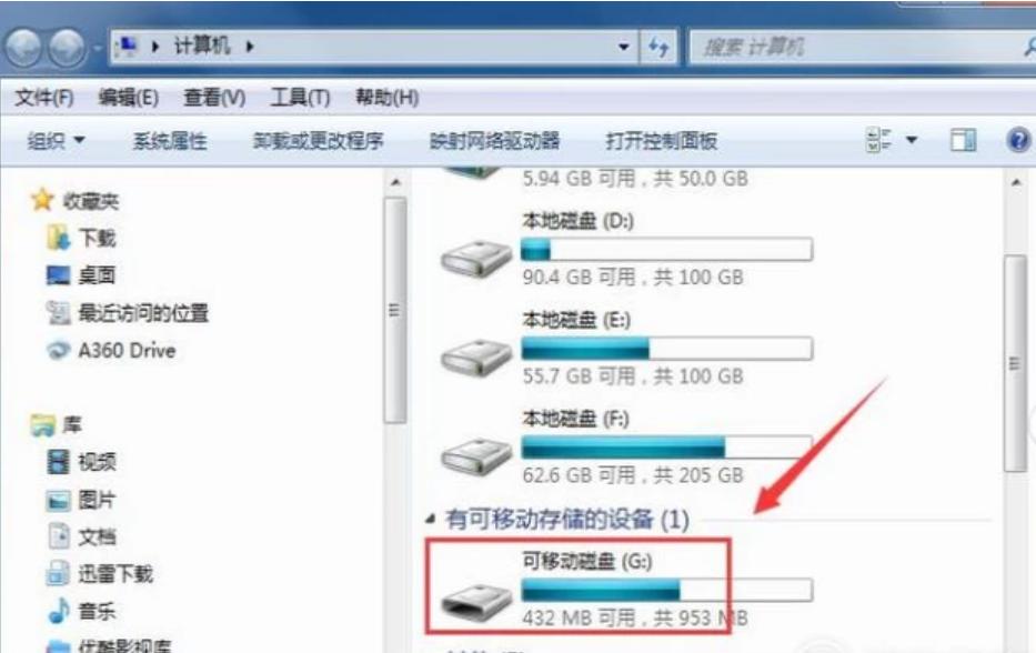 1,在桌面上双击计算机的快捷图标,在弹出的对话框内找到我们的U盘盘符