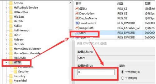 2、如果发现端口被多个占用,你可以用Win+R的方式,输入Regedit进入注册表,找HKEY_LOCAL_MACHINE\SYSTEM\CurrentControlSet\services\HTTP 修改Start这一项,将其改为0。