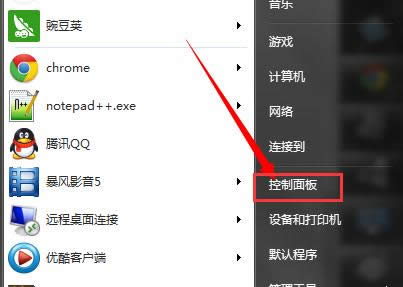 点击右下角的开始菜单,找到控制面板,并打开。