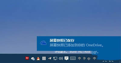 2、当你点击“保存到OneDrive”按钮后,每次当你按下PrtScn按键时OneDrive都会自动将你捕获到的截屏保存到OneDrive\图片\屏幕截图中,并出现下图所示的提示: