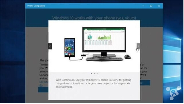 在手机助手的界面中,我们可以点击“查看可以执行的所有操作”来找到更多将手机连接到 Windnows 10 系统的方式,这其中,最有趣的要属 Continuum 功能。手机连接电脑之后,我们就可以在电脑的大屏幕上运行手机中的应用程序。