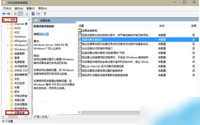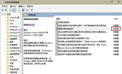 2、选择计算机配置→管理模板→系统→设备安装,然后在右边找到“配置设备安装超时”并双击打开;