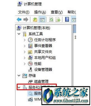 2、在“计算机管理”界面左侧点击【服务和应用程序】—【服务】;