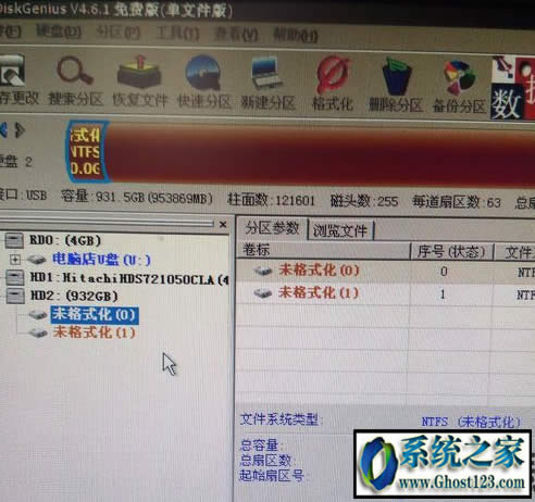 1.使用 磁盘管理工具(DiskGenius)来处理吧,但在Windows下会一直很卡,一直读取硬盘信息,卡着不动。