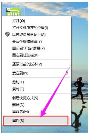 在不能正常使用的软件上,点击鼠标右键选择“属性”。