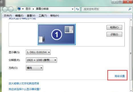 2.在设置分辨率界面中,点击高级设置,进入下一步。