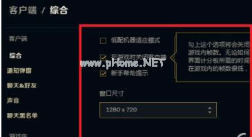 3.在弹出的窗口中选择综合项目,接着在右侧找到低配机器适应模式,将其选项取消勾选,然后保存。