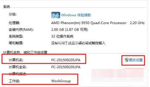 2. 查看并记录计算机名,及工作组信息