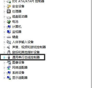 3.在设备管理器界面中找到并点击通用串行总线控制器。
