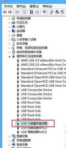 4.找到usb大容量存储设备,鼠标右键该选项,选择卸载。