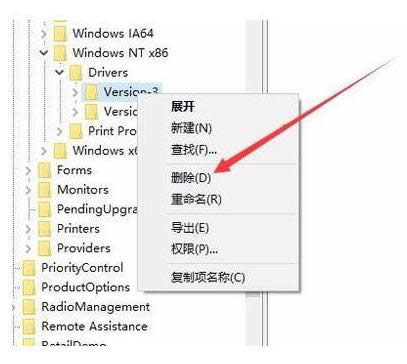 4、右键点击Version-3这个注册表项,然后在弹出菜单中选择“删除”菜单项,把该注册表项删除。