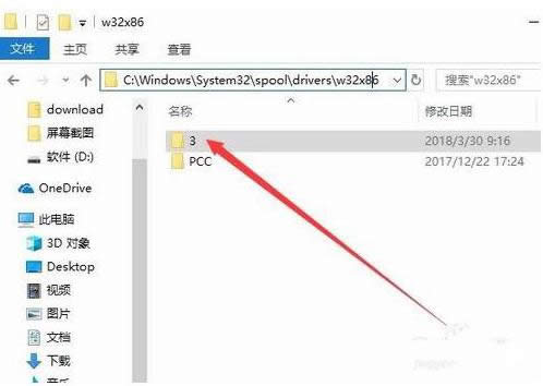 5、接着我们再打开文件资源管理器,然后定位到C:\Windows\System32\spool\drivers\w32x86\3,把该文件夹下的所有文件全部删除。如果您是64位系统,需定位到C:\Windows\System32\spool\drivers\x64\3 文件夹下。