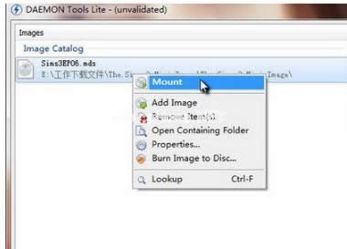 之后我们回到DAEMON Tools界面,在上部就可以看到一个镜像文件列表,我们选择刚刚打开的MDS文件,右键点击选择“Mount”。