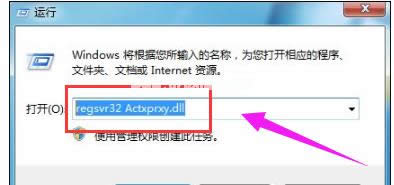使用快捷键“Win+R”弹出【运行】,输入“regsvr32 Actxprxy.dll”,点击【确定】