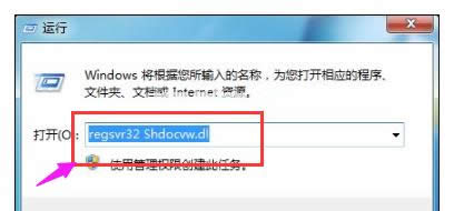 再用同样的方式,使用快捷键“Win+R”弹出【运行】,输入“regsvr32 Shdocvw.dll”,点击【确定】即可