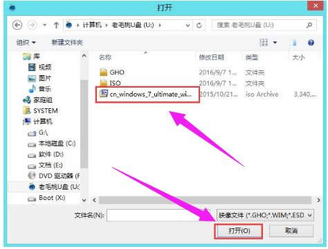 此时会弹出一个查找范围窗口,我们只需打开启动u盘,选中win7 iso系统镜像文件,点击“打开”按钮