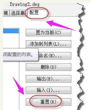 在“选项”窗口中点击“配置”选项卡下的“重置”可以恢复默认设置。