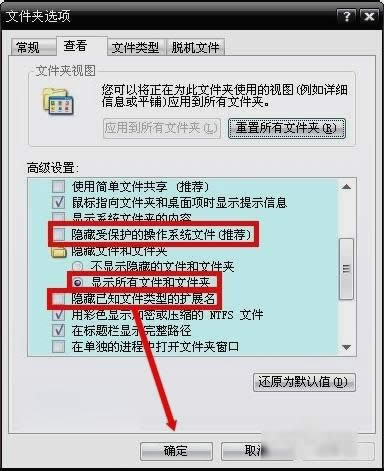 8.①扩展名为DMP的日志文件为系统文件,如找不到,需要提前修改文件夹选项。②开始→控制面板→文件夹选项→查看→点选显示所有文件和文件夹→应用。③去掉隐藏受保护的操作系统文件、隐藏已知文件类型的扩展名前的对勾→确定。