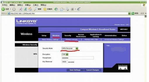 大家可以根据自己的需要选择加密的方式,上图选的是WPA模式。(选的时候注意了,有些加密模式网卡并不支持)