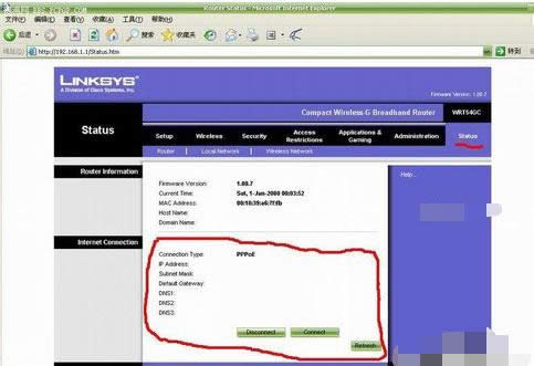 设置好后,在上面红框内能显示出路由器当前状态。(由于是测试,上图状态是空的,正常连接的情况下,ip address、subnet mask等栏内都是有数字类的显示的) 基本设置就以上方法了