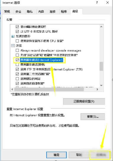 5.将禁用脚本选项前的勾去掉,点击下方的应用按钮。