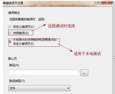 最后如果是在本地调试,马口第三个“本地请求的详细错误和远程请求的自定义错误页”;如果需要远程调试,则选中“详细错误”。