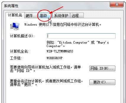 打开“高级系统设置”后,找到选项卡“高级”,并打开: