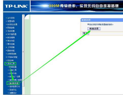 这时新的密码应该已经生效了。如果没有生效的话,点击左侧的【系统工具】→【重启路由器】,然后在右侧点击【重启路由器】