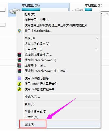 双击打开计算机图标,然后鼠标右键点击磁盘,选择属性